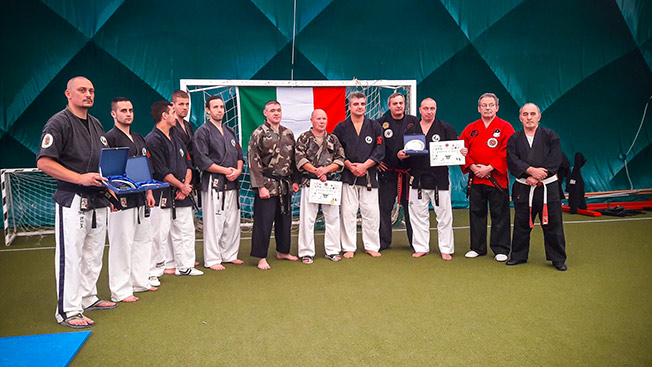 2016-12-11 10:41:09 / HÍREK / posted by Lányi TamásA magyar közelharc és kézitusa szövetség által megrendezett 8. Késharc- súlycsoport nélküli küzdelem, és önvédelmi versenyen mind a hét versenyzőnk dobogós helyen végzett és tíz éremmel bővítették az Universum dicsőség falát. 3 arany, 2 ezüst, 5 bronz. Következő napon a halásztelki nemzetközi önvédelmi és hapkido szemináriumon a külfödi mesterek életmű díjat adomànyoztak nagy péter mesternek és több tanítványa kiemelkedő technikai tudásáért nemzetközi elismerő oklevélben részesült.